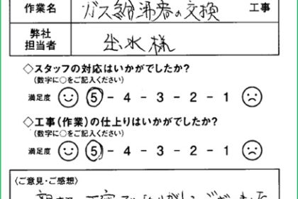 トイレ便座交換をさせていただいたお客様から貴重なお声を頂きました。