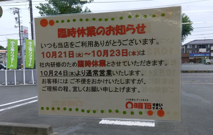 さて、[小工事&リフォーム専門店]明石すまいサポートは下記の日程で臨時休業とさせて頂きます。