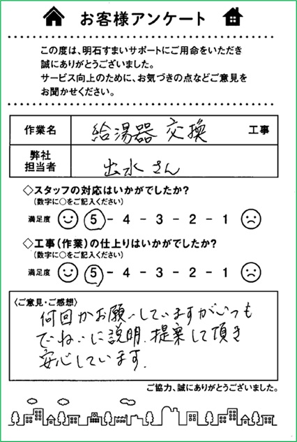 給湯器交換をさせていただいたお客様から貴重なお声を頂きました。 ありがとうございました。[2025年10月06日]