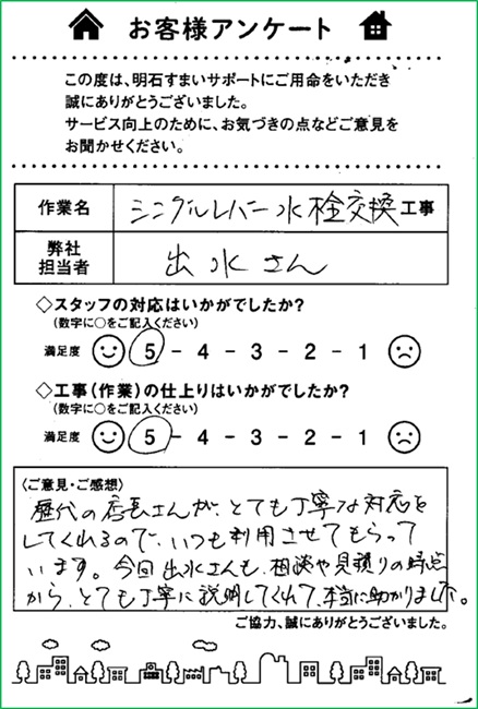 キッチン水栓交換をさせていただいたお客様から貴重なお声を頂きました。 ありがとうございました。[2025年11月07日]
