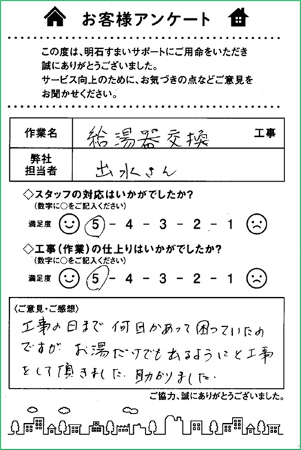 リフォームお客様の声|給湯器交換|浜松市