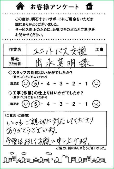 ユニットバスリフォームをさせていただいたお客様から貴重なお声を頂きました。 ありがとうございました。[2025年12月04日到着]
