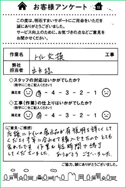 トイレ換をさせていただいたお客様から貴重なお声を頂きました。                               ありがとうございました。[2025年12月25日]