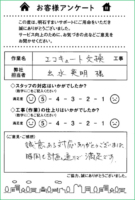 リフォームお客さなの声|エコキュート交換|浜松市