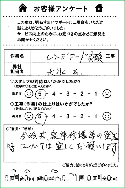 リフォームお客様の声|レンジフード交換|浜松市
