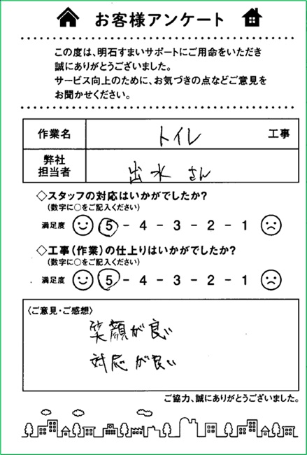 トイレ交換をさせていただいたお客様から貴重なお声を頂きました。 ありがとうございました。[2026年03月10日]