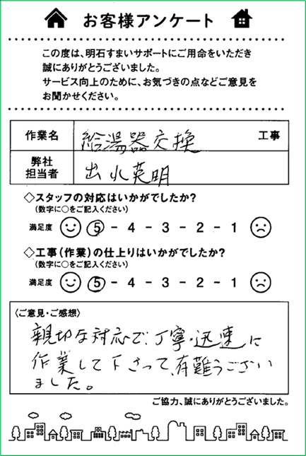 給湯器交換をさせていただいたお客様から貴重なお声を頂きました。 ありがとうございました。[2026年03月26日到着]