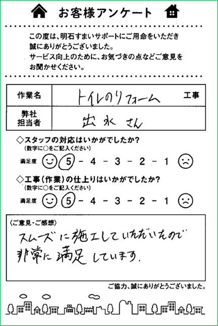トイレリフォームをさせていただいたお客様から貴重なお声を頂きました。                        ありがとうございました。[2026年04月10日到着]