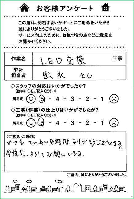 リフォームお客様の声|LED照明交換|浜松市