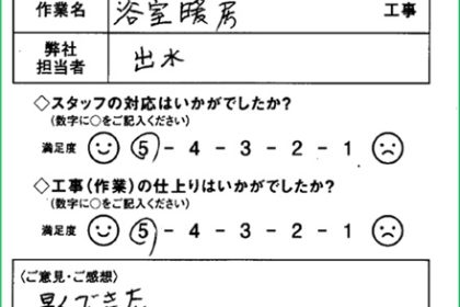 リフォームお客様の声|浴室換気暖房機交換|浜松市