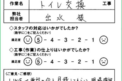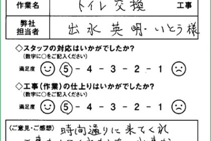 リフォームお客様の声|トイレ交換|浜松市