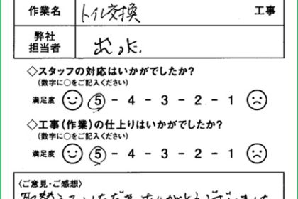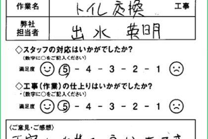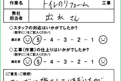 リフォームお客様の声|洗面化粧台交換|浜松市